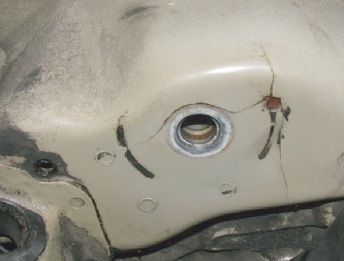 Zu prüfen sind auch die Aufnahmen der Federteller der hinteren Federn, sogar hier entstehen durch das Biegemoment Risse.